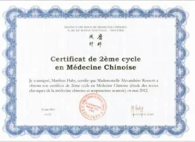 Curieuse et passionnée, j’ai suivi une formation exigeante à l’Institut Chuzhen de Paris, en partenariat avec l’Université de Pékin. Pendant cinq années, j’ai eu la chance d’apprendre auprès de maîtres européens et chinois, et de vivre des moments marquants comme les enseignements du professeur Wang Li Ping, une figure d’exception.