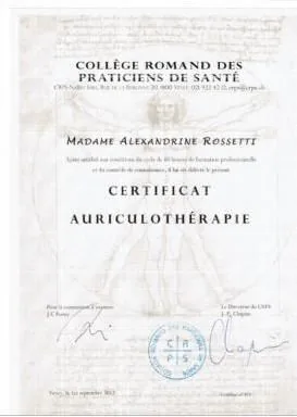 Diplômée en Médecine Traditionnelle Chinoise et en Acupuncture avancée, j’ai commencé à exercer. Mais je sentais qu’il me manquait encore des outils pour répondre à toutes les dimensions des besoins de mes patients. C’est ainsi que je me suis formée à l’Auriculothérapie, une méthode qui complète merveilleusement l’Acupuncture en agissant sur d’autres mécanismes, avec une base scientifique solide (merci au professeur Nogier !).